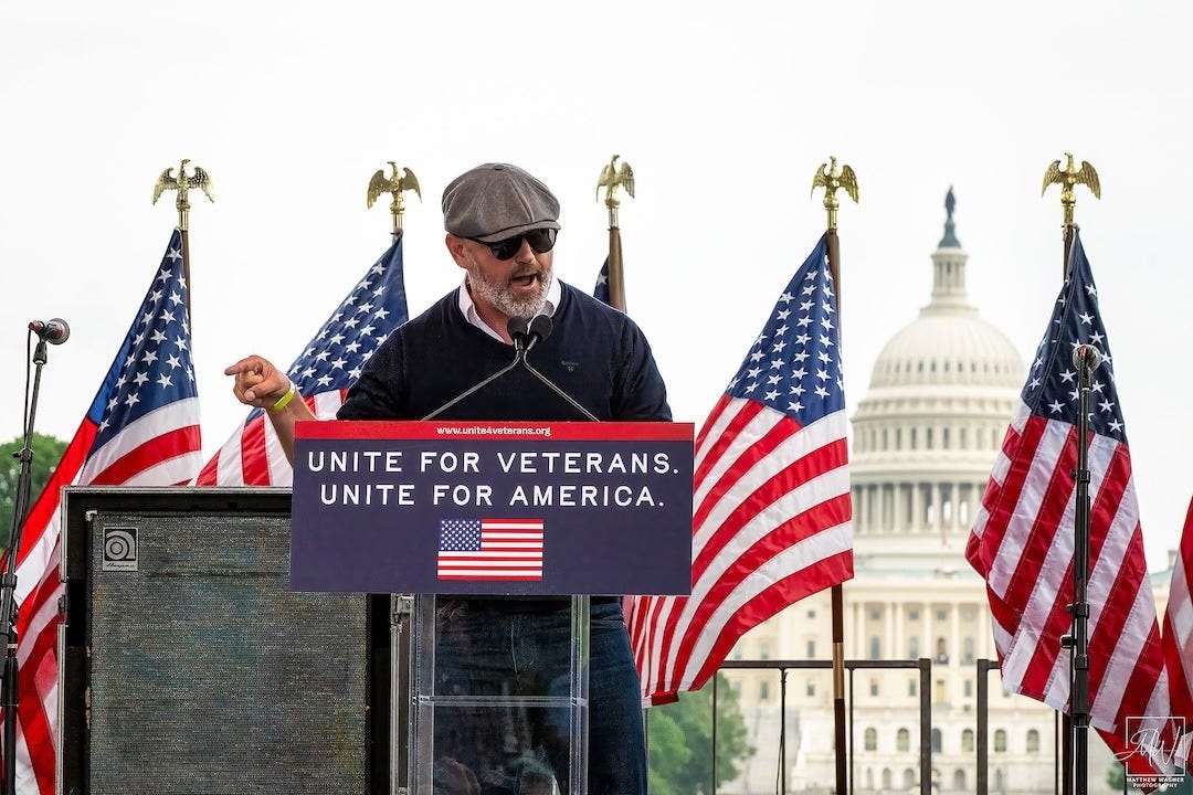 Check out Alvarez-Aranyos’ speech on February 17, 2025 near the U.S. Capitol building during his second National Day of Protest event, where he tells his crowd, “We will not submit to the same fascism our grandparents defeated”: